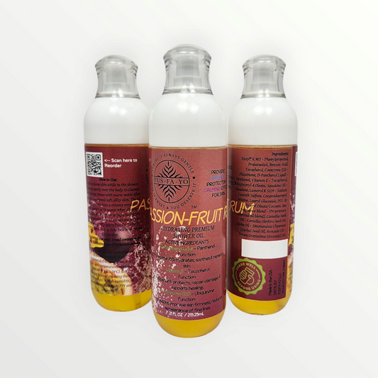 FUS-FÁ-YO Shower oil -Passion-fruit Rum 7.21.oz (All natural infuse with Coenzyme Q10, D-Panthenol, & Vitamin E) ....